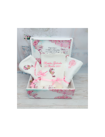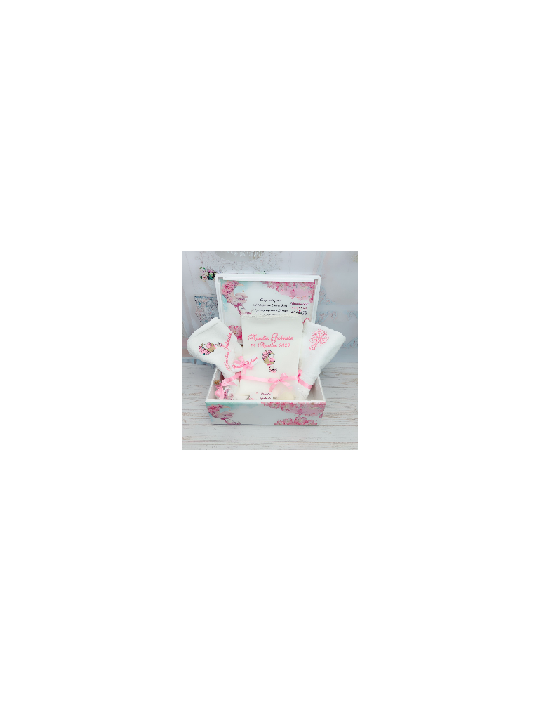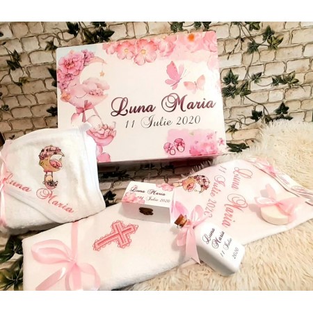 Pretul afisat se refera la setul de botez ce include: cutie amintiri, trusou brodat - personalizarea este inclusa in pret
