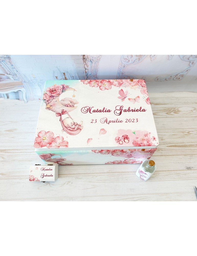 Cutia poate fi utilizată ulterior pentru păstrarea tăviței de moț, a accesoriilor speciale sau a celor mai dragi amintiri din copilărie.