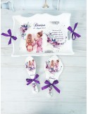 Acest set gatit mireasa este ideal pentru pregatirea miresei inainte de cununia religioasa si reprezinta un cadou traditional din partea nasei. Setul este perfect pentru poze, aducand un aer elegant si rafinat in momentele speciale ale zilei tale. Datorita procesului de productie manuala, fiecare set este unic si special, oferind o valoare deosebita oricarui eveniment de nunta sau cununie.