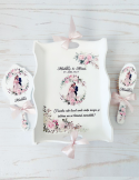 Acest set gatit mireasa este ideal pentru pregatirea miresei inainte de cununia religioasa si reprezinta un cadou traditional din partea nasei. Setul este perfect pentru poze, aducand un aer elegant si rafinat in momentele speciale ale zilei tale. Datorita procesului de productie manuala, fiecare set este unic si special, oferind o valoare deosebita oricarui eveniment de nunta sau cununie.