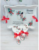 Acest set gatit mireasa este ideal pentru pregatirea miresei inainte de cununia religioasa si reprezinta un cadou traditional din partea nasei. Setul este perfect pentru poze, aducand un aer elegant si rafinat in momentele speciale ale zilei tale. Datorita procesului de productie manuala, fiecare set este unic si special, oferind o valoare deosebita oricarui eveniment de nunta sau cununie.