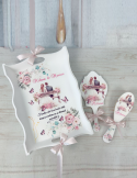 Descopera Setul Gatit Mireasa personalizat, un cadou unic si elegant, perfect pentru orice mireasa. Complet realizat manual in atelierul nostru, acest set este compus din trei piese esentiale: o tava, o oglinda de mana si o perie, toate fabricate din lemn sau MDF de cea mai buna calitate. Fiecare piesa este vopsita si lacuita manual cu mare atentie la detalii, folosind vopsea acrilica non-toxica pe baza de apa si lac rezistent, garantand astfel durabilitatea si un finisaj impecabil.