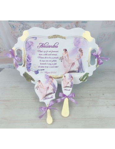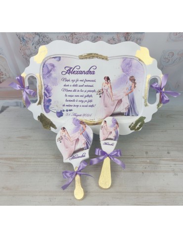 Set gatit mireasa personalizat cu nuante mov lila