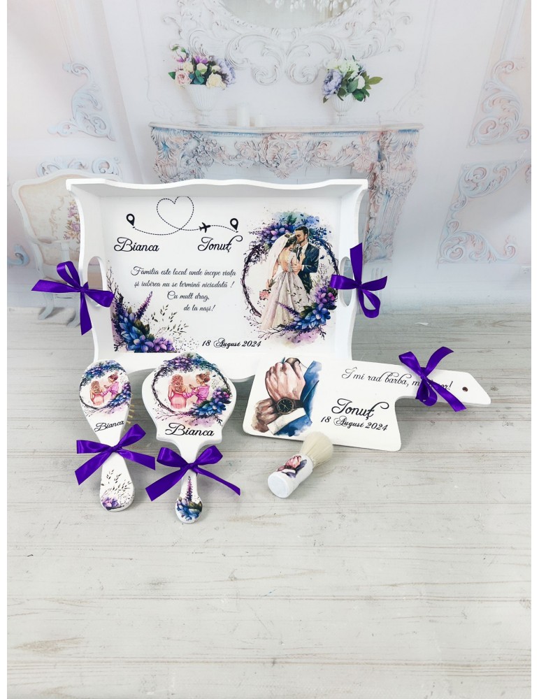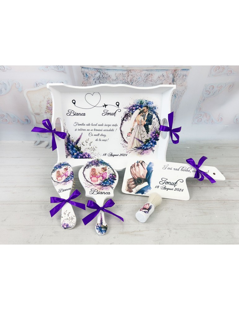 Set gatit mireasa si ginere nuante mov - lavanda