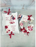 Acest set gatit mireasa este ideal pentru pregatirea miresei inainte de cununia religioasa si reprezinta un cadou traditional din partea nasei. Setul este perfect pentru poze, aducand un aer elegant si rafinat in momentele speciale ale zilei tale. Datorita procesului de productie manuala, fiecare set este unic si special, oferind o valoare deosebita oricarui eveniment de nunta sau cununie.