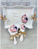 Descopera Setul Gatit Mireasa personalizat, un cadou unic si elegant, perfect pentru orice mireasa. Complet realizat manual in atelierul nostru, acest set este compus din trei piese esentiale: o tava, o oglinda de mana si o perie, toate fabricate din lemn sau MDF de cea mai buna calitate. Fiecare piesa este vopsita si lacuita manual cu mare atentie la detalii, folosind vopsea acrilica non-toxica pe baza de apa si lac rezistent, garantand astfel durabilitatea si un finisaj impecabil.