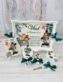 Pentru plasarea comenzii este necesar sa completati datele de personalizare: prenume copil, data eveniment, mesaj preferat, adaugati fotografie (daca doriti), sa salvati personalizarea, sa introduceti cantitatea(numarul de seturi dorite) si sa achitati valoarea comenzii (avans si/sau integral).