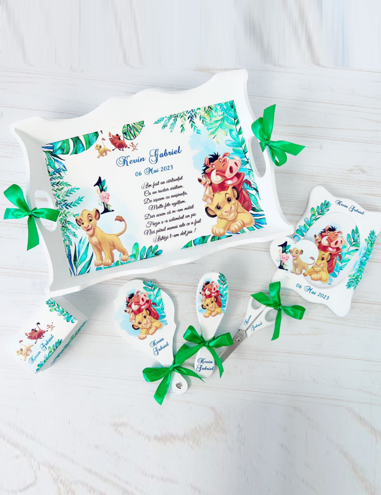 6 elemente: tavita, perie, oglinda, rama foto, cutiuta suvite, forfecuta