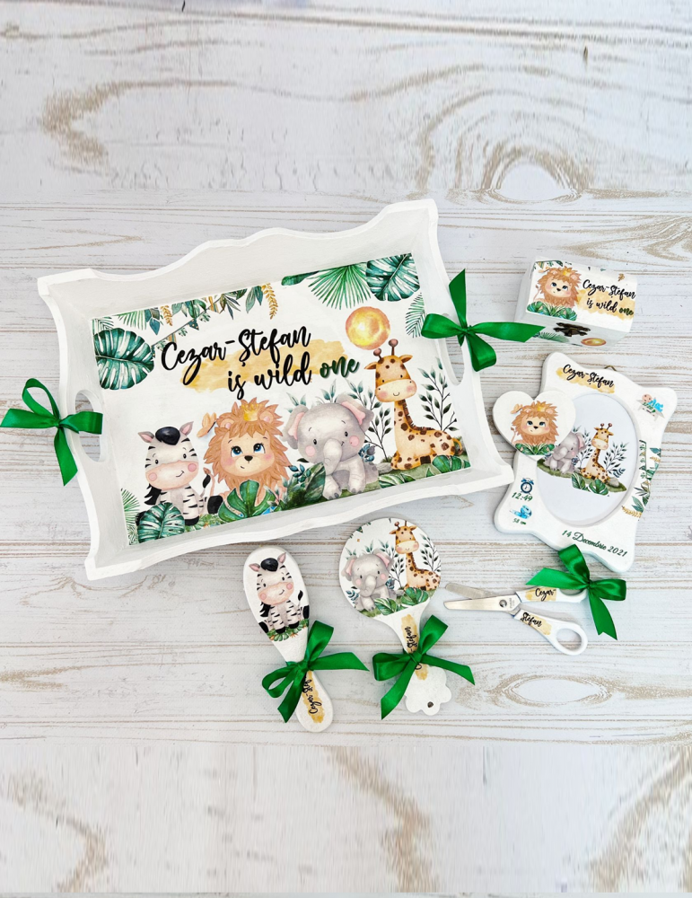 6 elemente: tavita, perie, oglinda, rama foto, cutiuta suvite, forfecuta