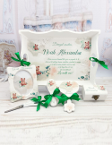 • Seturile de mot/turta personalizate sunt lucrate prin tehnica decoupage si sunt lacuite in 3 straturi pentru a asigura rezistenta in timp. Produsele utilizate pe parcursul procesului de personalizare sunt profesionale, NON-TOXICE si asigura rezistenta la spalare. Principalul nostru furnizor fiind MAXI DECOR.