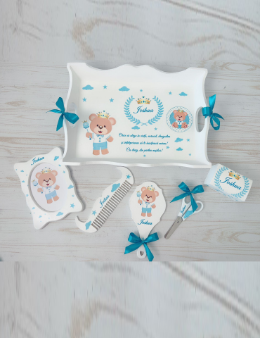 6 elemente: tavita, perie, oglinda, rama foto, cutiuta suvite, forfecuta