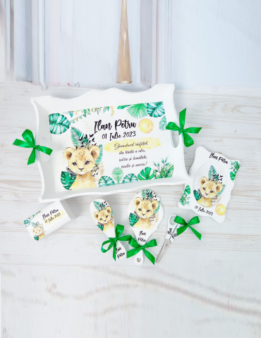 Pentru plasarea comenzii este necesar sa completati datele de personalizare: prenume copil, data eveniment, mesaj preferat, adaugati fotografie (daca doriti), sa salvati personalizarea, sa introduceti cantitatea(numarul de seturi dorite) si sa achitati valoarea comenzii (avans si/sau integral).