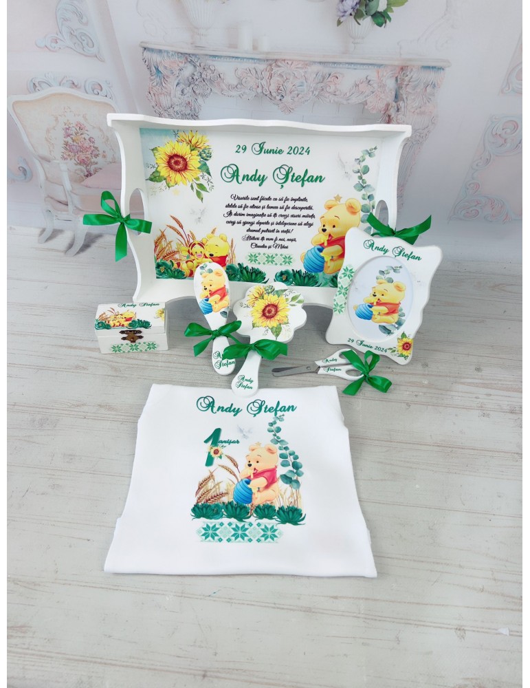Set de mot personalizat cu tematica Winnie- floarea soarelui spice de grau verde