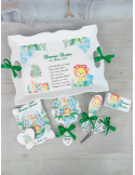 Pentru plasarea comenzii este necesar sa completati datele de personalizare: prenume copil, data eveniment, mesaj preferat, adaugati fotografie (daca doriti), sa salvati personalizarea, sa introduceti cantitatea(numarul de seturi dorite) si sa achitati valoarea comenzii (avans si/sau integral).