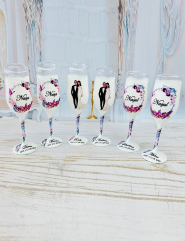 Pretul se refera la un singur pahar si include personalizarea cu numele mirilor/nasilor si data evenimentului.