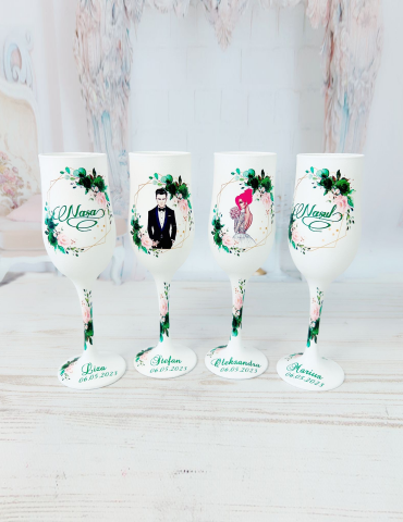 Pahare nunta personalizate pentru miri si nasi nuante de verde inchis