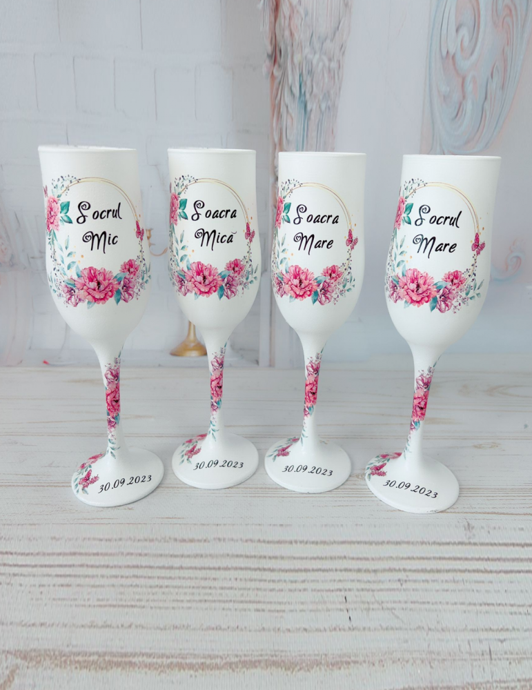Pahare nunta personalizate pentru socrii nuante de roz