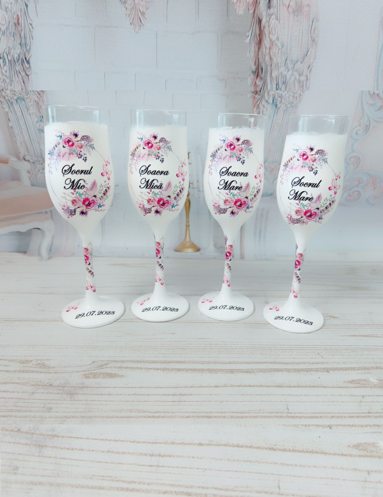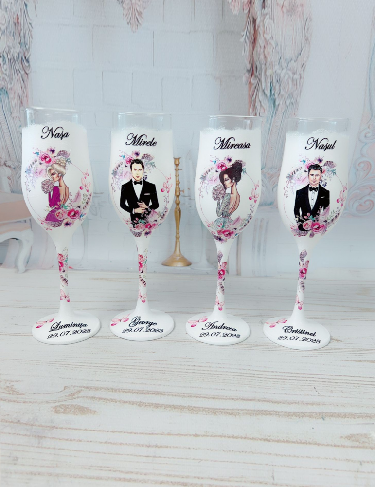 Pretul se refera la un singur pahar si include personalizarea cu numele mirilor/nasilor si data evenimentului.