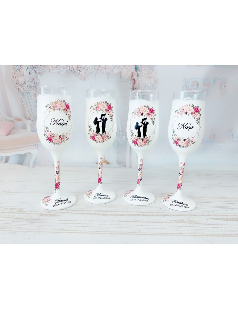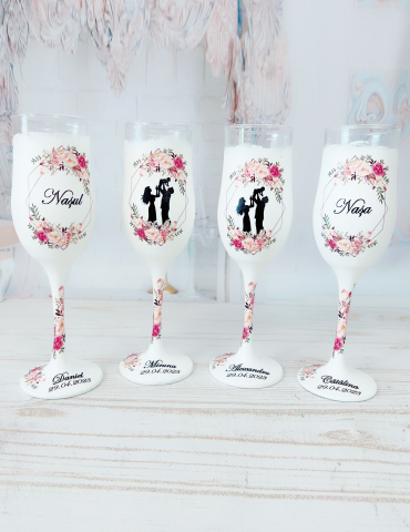 Pretul se refera la un singur pahar si include personalizarea cu numele mirilor/nasilor si data evenimentului.