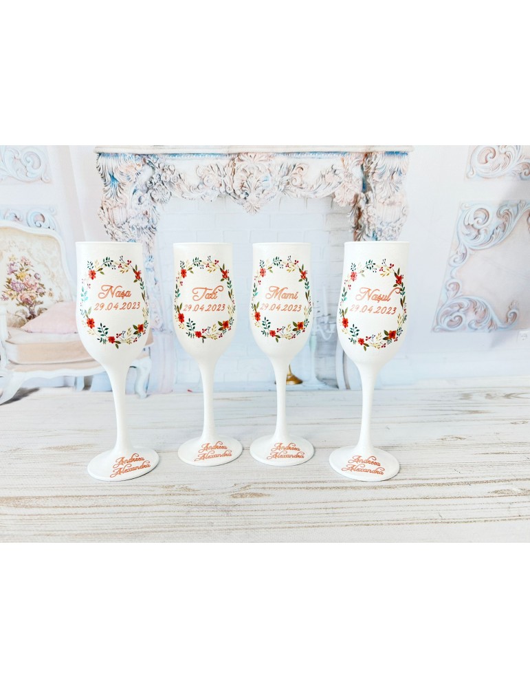 Pretul se refera la un singur pahar si include personalizarea cu numele mirilor/nasilor si data evenimentului.
