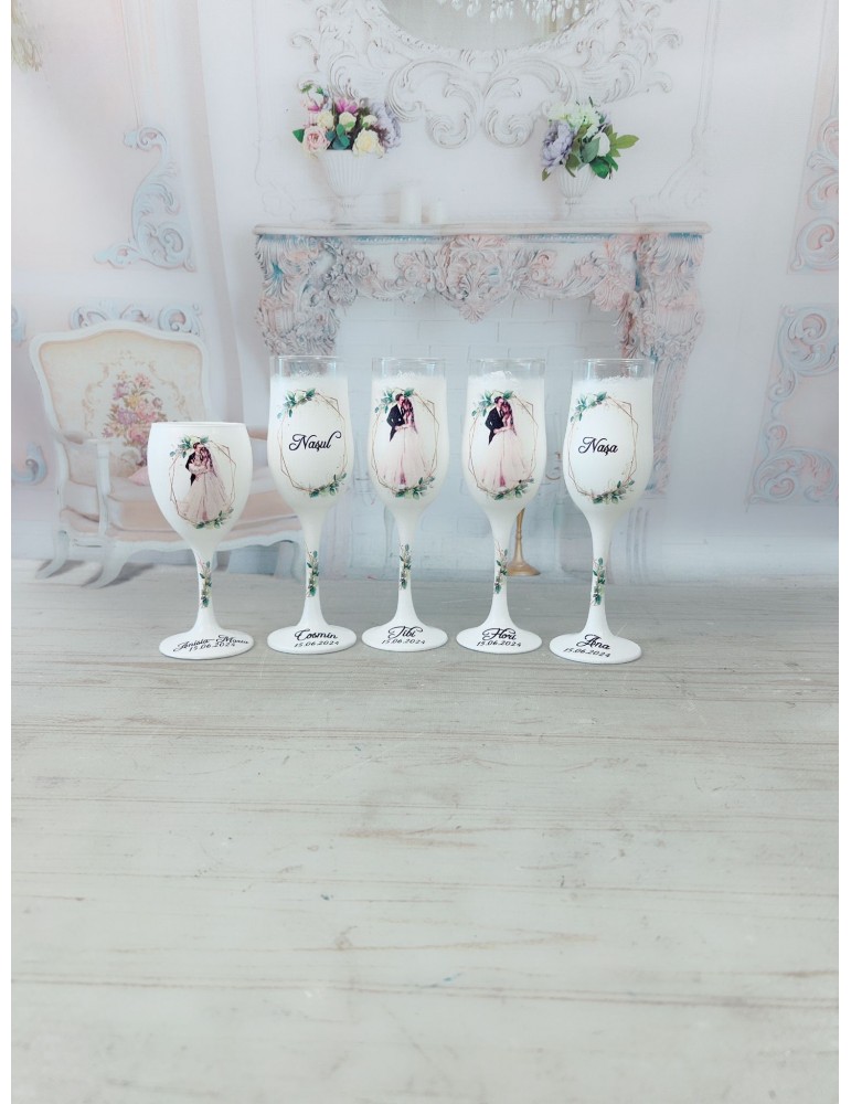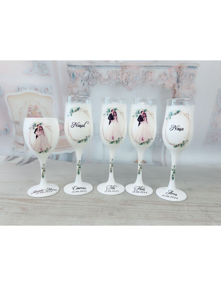 Pretul se refera la un singur pahar si include personalizarea cu numele mirilor/nasilor si data evenimentului.