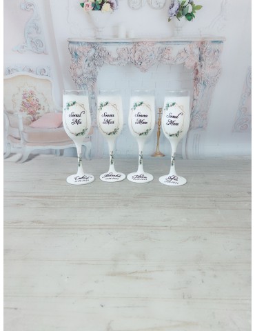 Pretul afisat se refera la un singur pahar si include doar personalizarea de baza: inlocuire nume miri si data eveniment.