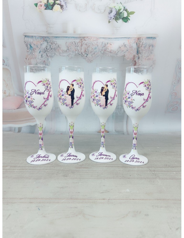 Pretul se refera la un singur pahar si include personalizarea cu numele mirilor/nasilor si data evenimentului.