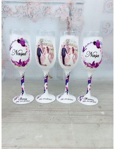Pahare nunta pentru miri si nasi cu mov