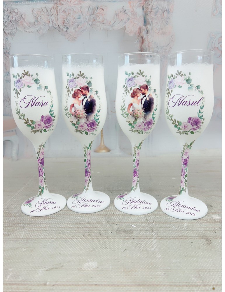 Pretul se refera la un singur pahar si include personalizarea cu numele mirilor/nasilor si data evenimentului.
