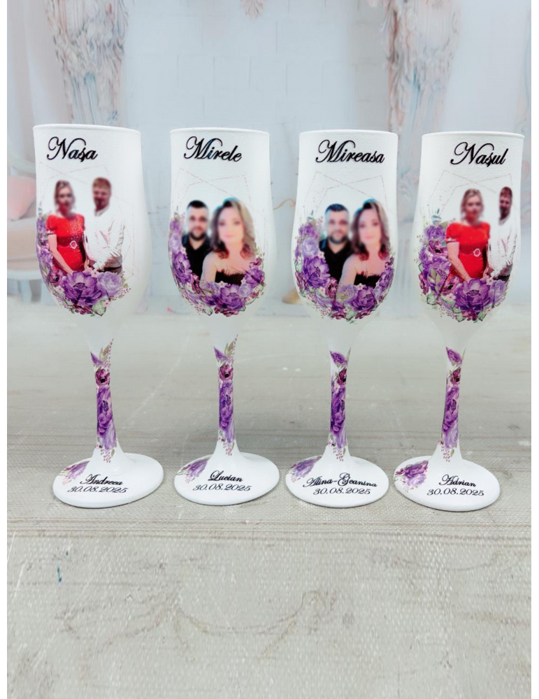 Pretul se refera la un singur pahar si include personalizarea cu numele mirilor/nasilor si data evenimentului.