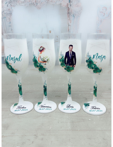 Pretul se refera la un singur pahar si include personalizarea cu numele mirilor/nasilor si data evenimentului.