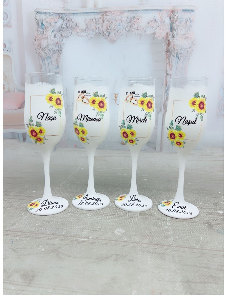 Pahare nunta pentru miri si nasi cu tematica floarea soarelui