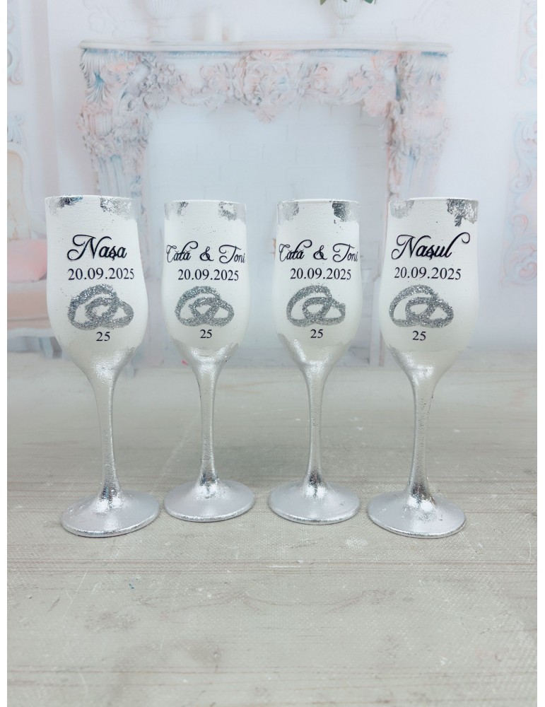 Pretul se refera la un singur pahar si include personalizarea cu numele mirilor/nasilor si data evenimentului.