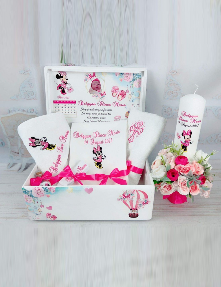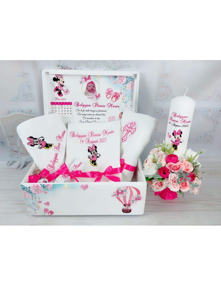 Ce contine setul de botez cu tematica "Minnie"?