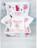 Descoperă seturile de botez personalizate pentru fetițe, create pentru a transforma ceremonia de botez într-un moment cu adevărat special. Fiecare element al setului este realizat cu atenție la detalii și personalizat pentru a reflecta tematica dorită, oferindu-ți posibilitatea să păstrezi amintiri prețioase pentru o viață întreagă.