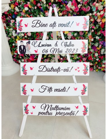 Stativul de nunta sau panoul de la intrare va aduce un plus de farmec decorului nuntii si devine totodata un simbol al poveștii voastre de dragoste.