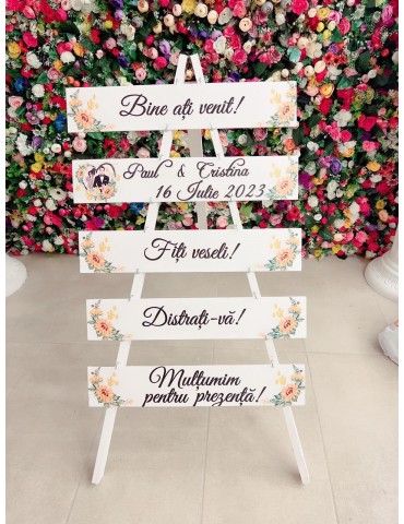 Stativul de nunta sau panoul de la intrare va aduce un plus de farmec decorului nuntii si devine totodata un simbol al poveștii voastre de dragoste.
