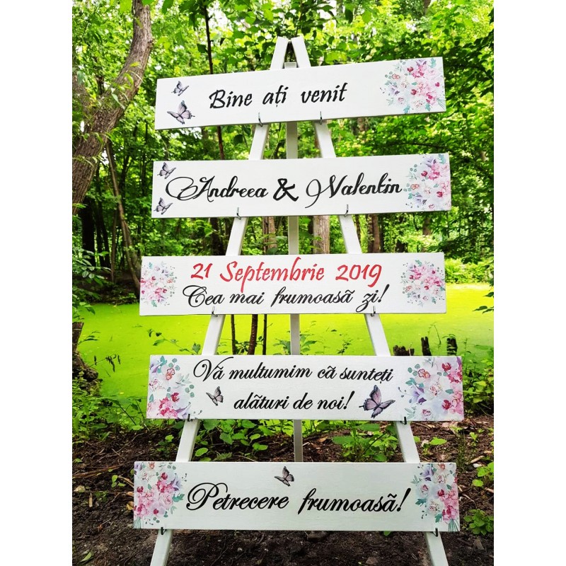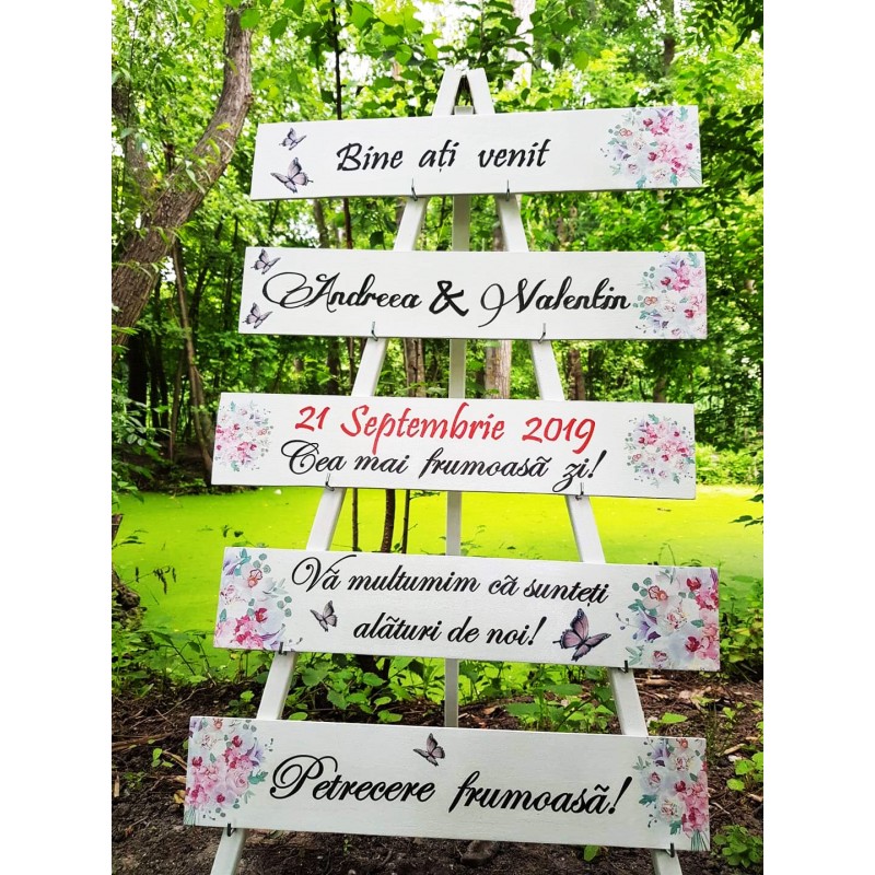 Stativul de nunta sau panoul de la intrare va aduce un plus de farmec decorului nuntii si devine totodata un simbol al poveștii voastre de dragoste.
