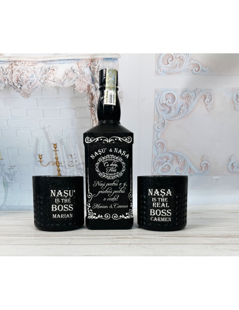 Sticla si pahare personalizate - cadou pentru nasi - Nasul is the boss- Nasa is the real boss