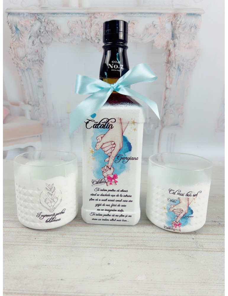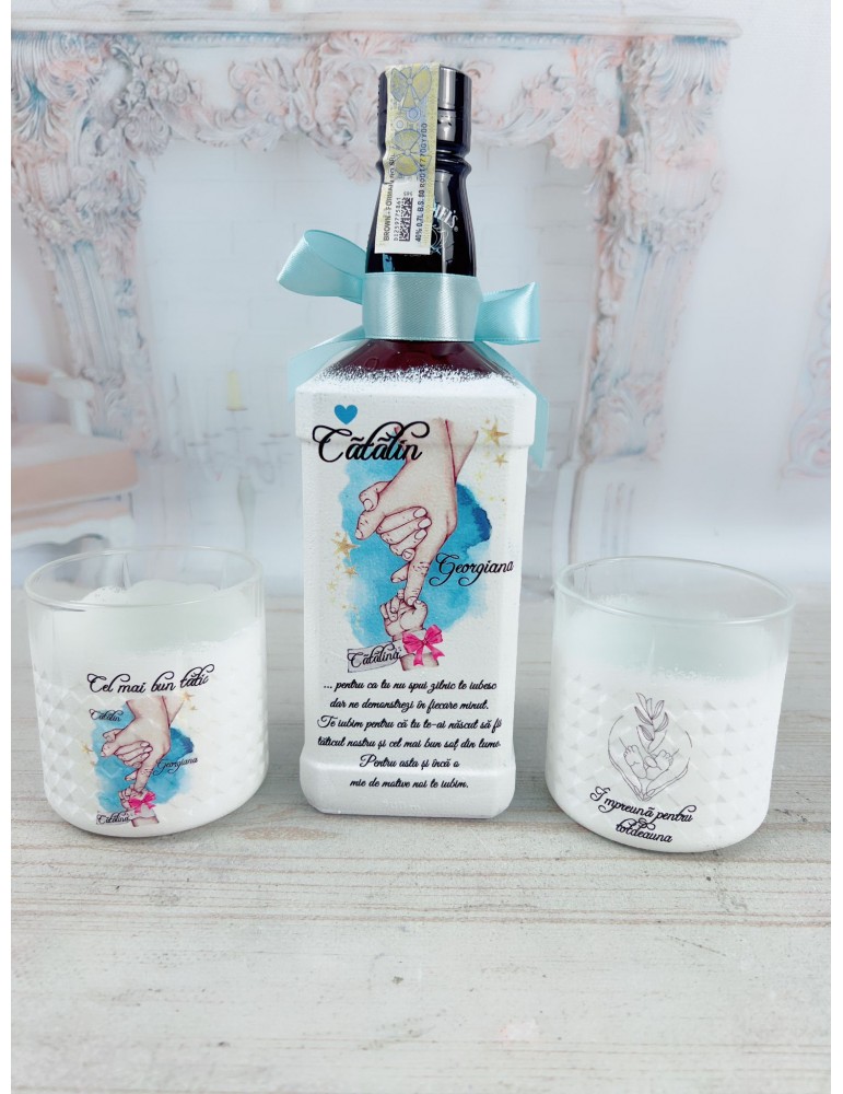 Fiecare sticlă este decorată manual și personalizată cu dedicația aleasă de tine – un mesaj romantic, un text amuzant sau o frază care vorbește despre legătura dintre tată și copil. Rezultatul este un cadou unic, plin de semnificație, pe care soțul tău îl va prețui mereu.