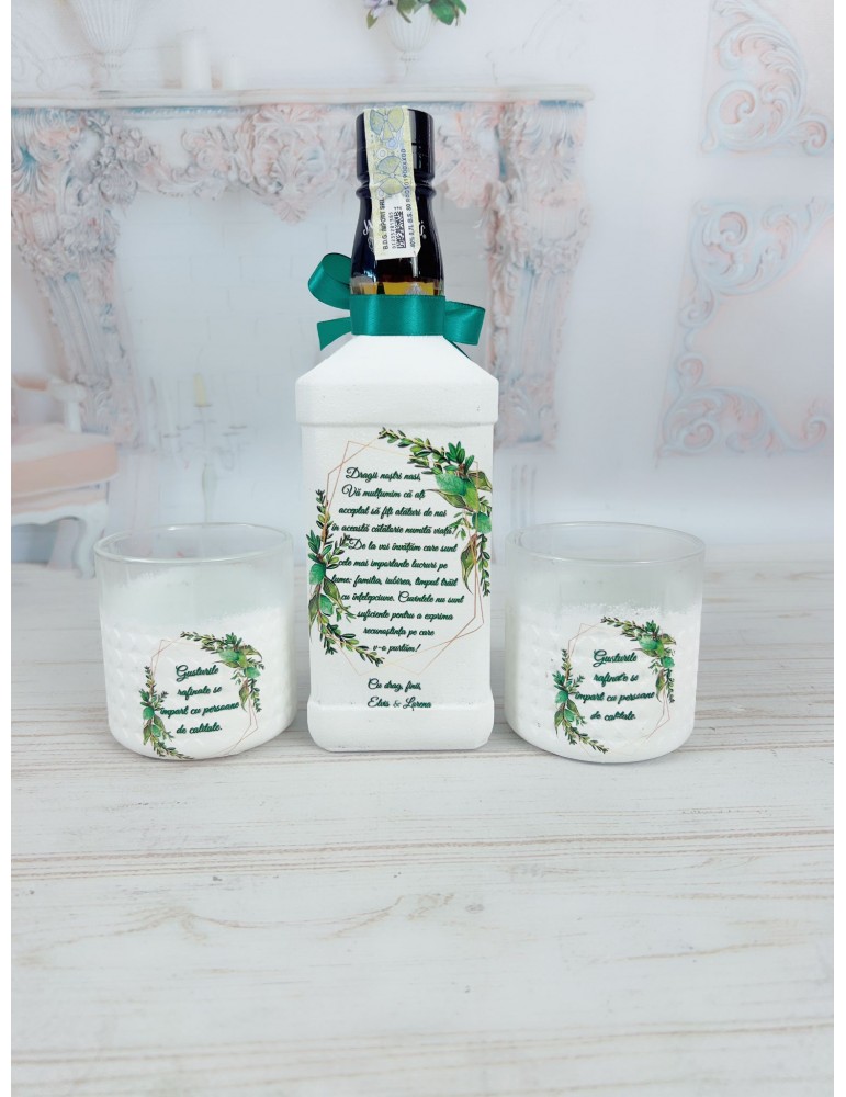 Transformă orice ocazie specială într-un moment memorabil cu acest set personalizat de whiskey, format din sticlă și 2 pahare decorate manual. Ideal pentru nași, miri sau cupluri de prieteni, acest cadou elegant și durabil vine ambalat în cutie cadou, gata să fie oferit imediat. Personalizarea unică și designul handmade îl transformă într-un cadou cu adevărat special!