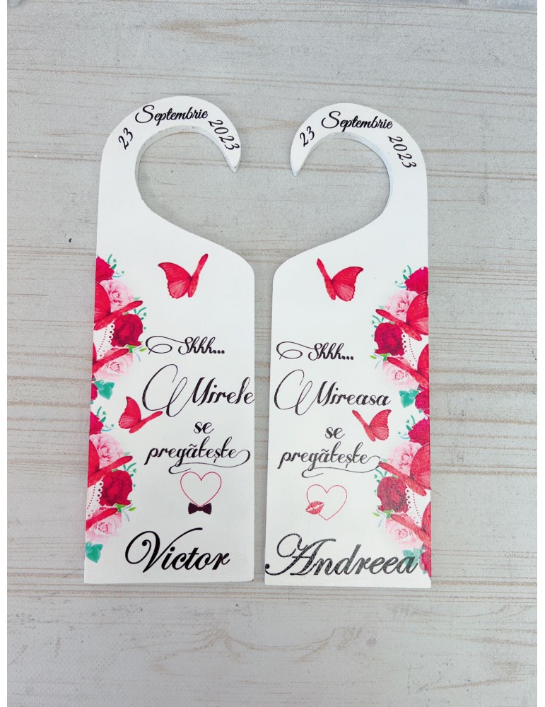 Vreți ca ușile să vorbească la nunta voastră? Taguri personalizate nunta sunt răspunsul! Imaginează-ți ușa către sala de festivități decorată cu un tag usa miri care spune: "Deschide pentru aventura vieții!" sau o agatatoare usa nunta care anunță cu mândrie: "Aici petrece cel mai nou cuplu din oraș!" Aceste mici accesorii sunt o modalitate haioasă pentru mireasă de a personaliza și mai mult ziua cea mare