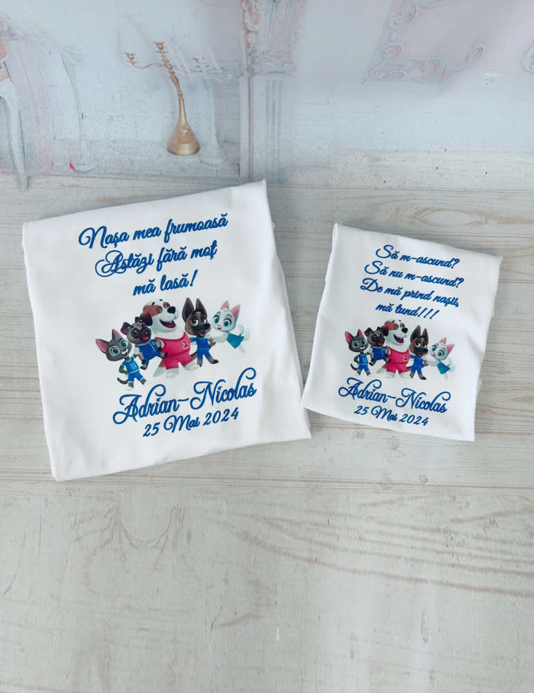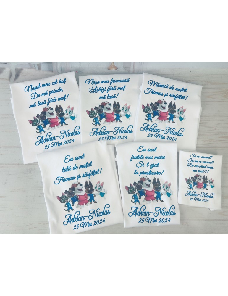 Pretul afisat se refera la un singur tricou si include personalizarea (prenume, mesaj preferat).