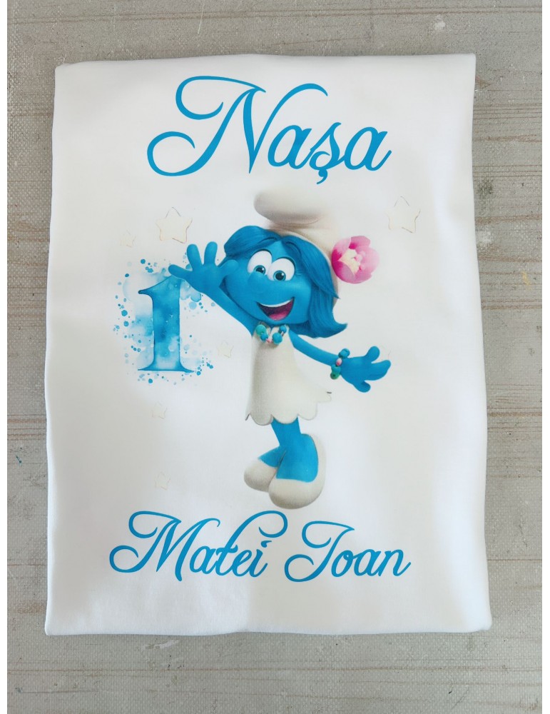 Tricou Personalizat pentru Petrecerea de Moț cu tematica Strumfi – 100% Bumbac, Design Unic