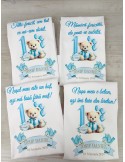 Set de tricouri personalizate pentru petrecerea de moț, dedicate părinților, nașilor, moșilor și bebelușului sărbătorit. Realizate din bumbac 100%, cu design tematic ursuleț și mașini, în nuanțe calde de albastru. Personalizarea este realizată prin transfer termic.