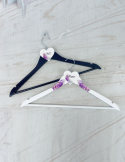 Un set de umerase personalizate cu tematica nuntii este cel mai frumos suport pe care hainele de nunta pot fi asezate cu eleganta.